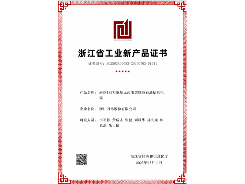 Pour répondre aux demandes changeantes des perspectives du marché, Wanma Special Cables, une filiale de Wanma Equipment & Cables, a mis à profit sa connaissance approfondie du marché. Ciblant les caractéristiques du marché et son vaste potentiel, son équipe R&D a développé et produit de manière indépendante un nouveau produit : des câbles pour plates-formes de forage pétrolier en caoutchouc, résistants à la chaleur jusqu'à 125 °C, à faible émission de fumée, sans halogène et ignifuges.